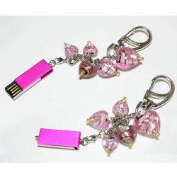 Флэш-карта - брелок с карабином, USB, 4Gb, на цепочке с подвесками Сердечки, голубой